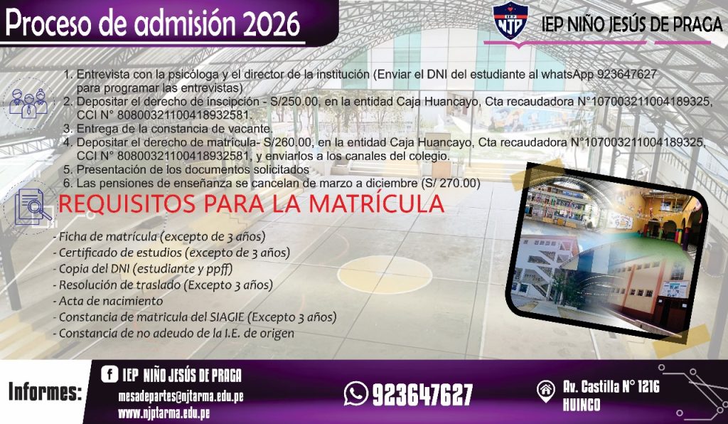 • Constancia de no adeudo de la I.E. de origen (Excepto 3 años).